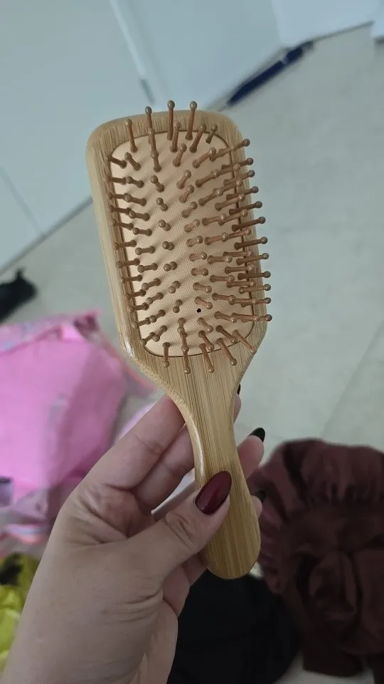 The 1PC Wooden Comb is a professional, healthy paddle cushion brush designed to reduce hair loss, improve scalp circulation, and provide a relaxing massage effect. Made with natural bamboo, it gently detangles hair, promotes shine, and reduces static, making it an essential addition to your hair care routine.